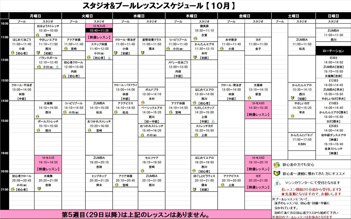 10月レッスンスケジュール(PDF)